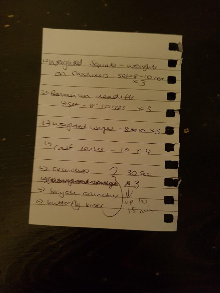 After last week’s strength and conditioning session I wasn’t sure whether I was doing the right thing and I definitely wasn’t time efficient so I went back to the drawing board.