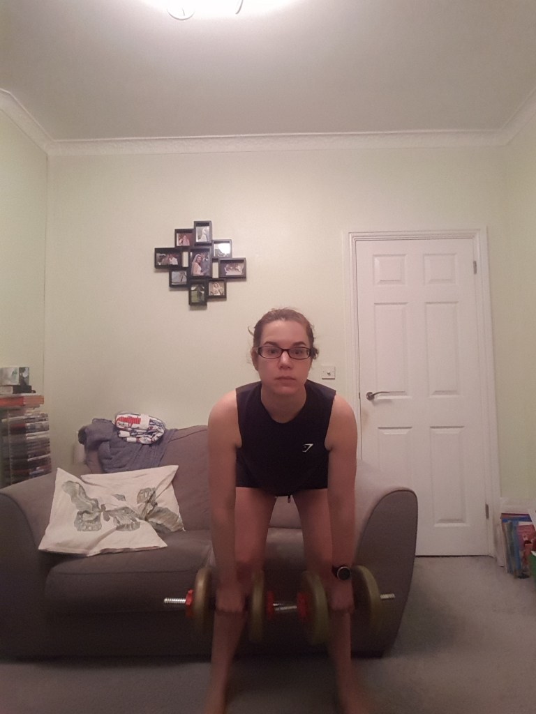 I don’t work out much with weights so it was quite different and I was concerned about making sure my form was good so I had my phone camera out to act as a mirror. Anyone walking in would have thought I was bonkers.