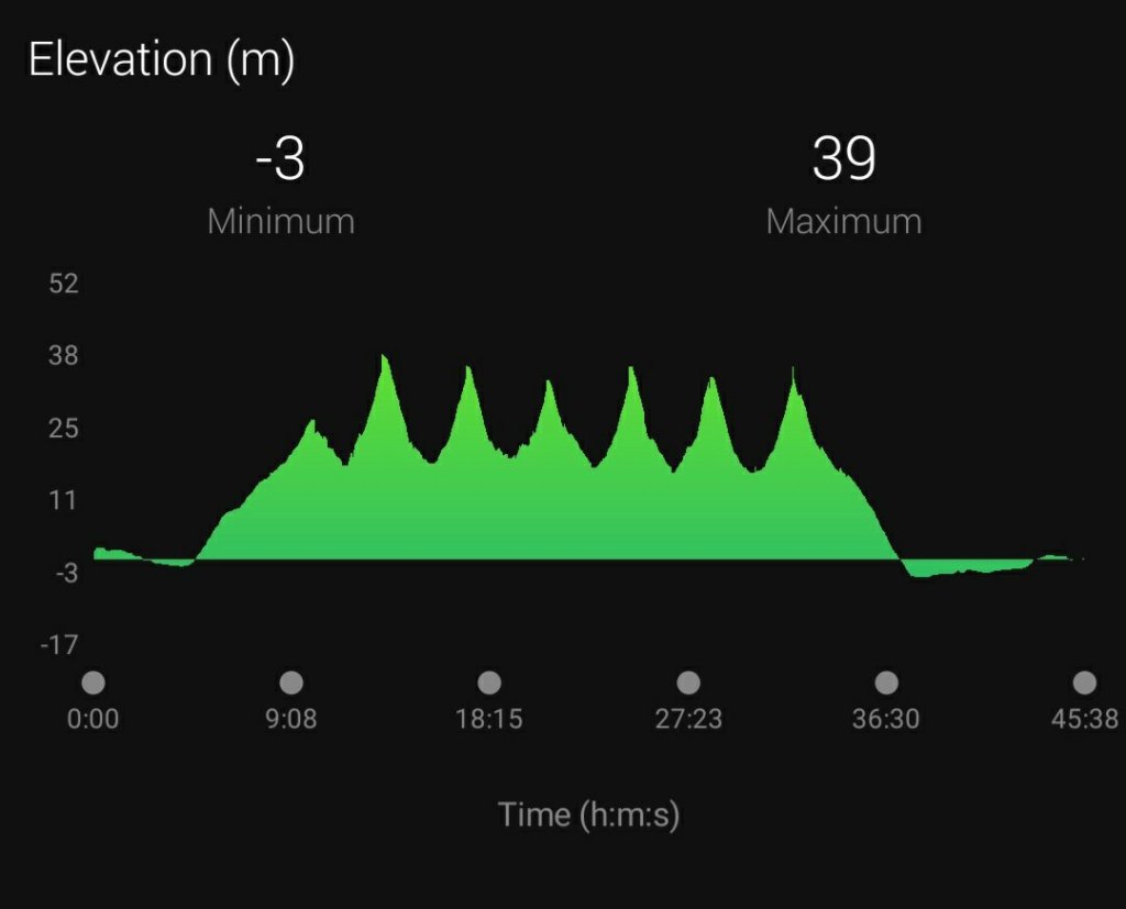 I knew it was going to be a fairly long hill, rather than the short hill reps I’d done previously so I had a mosey three quarters of the way up at the end of my warm up and then worked out roughly where I’d need to start for each rep to be about two minutes.